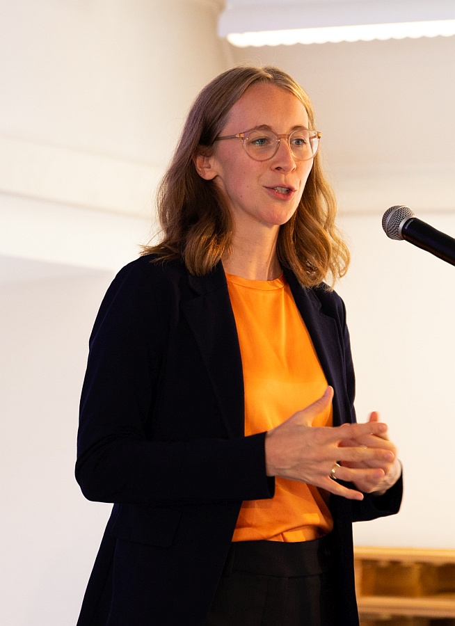 Nach diesem eindrucksvollen Vortrag kam die Politik in Person von Eva Lettenbauer, der Landesvorsitzenden von Bündnis 90/Die Grünen in Bayern zu Wort. Sie stellte Aktivitäten der Bundesregierung zur Förderung des Lesens vor und verwies auf Möglichkeiten zur Steigerung der Nachhaltigkeit in den Produktionsprozessen.