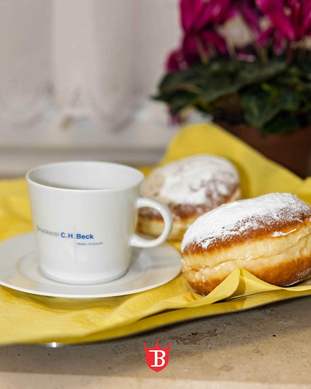Über die großzügige Lieferung frischer Faschingskrapfen von der ortsansässigen Bäckerei dürfen sich trotzdem alle Beschäftigten freuen.